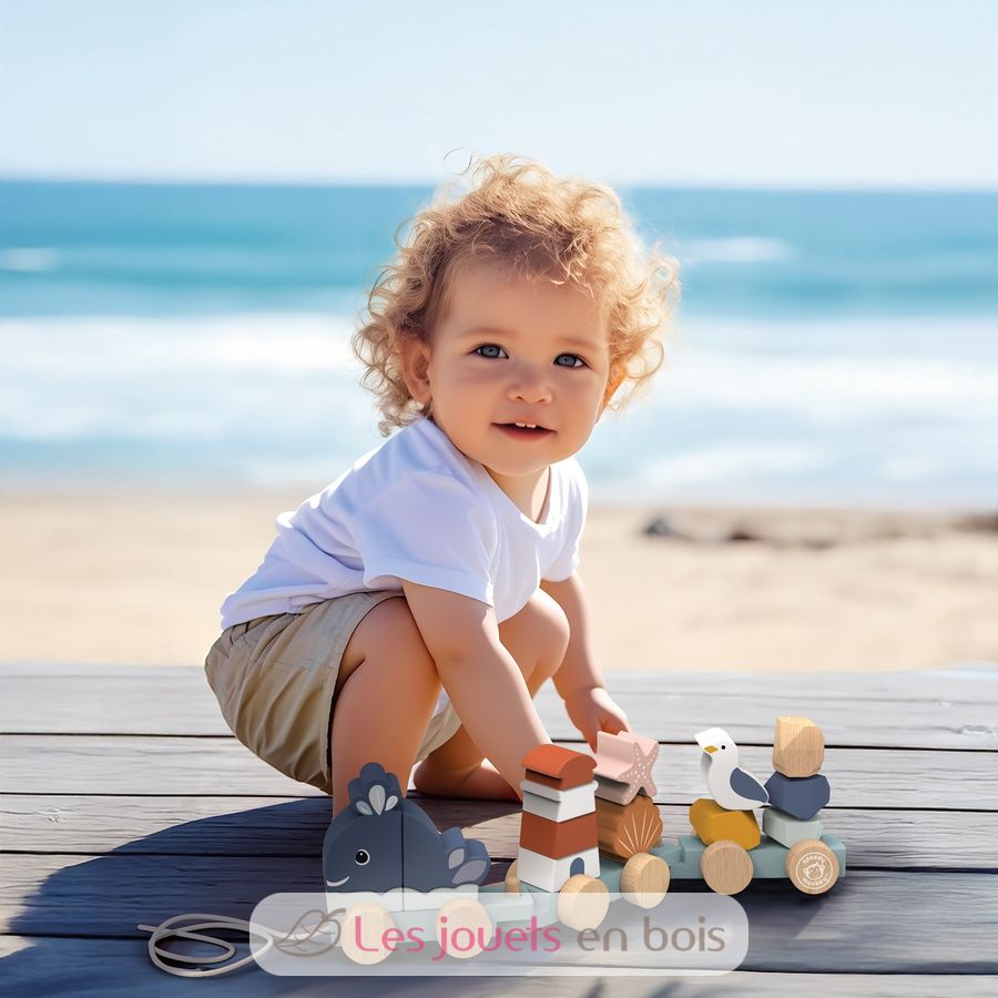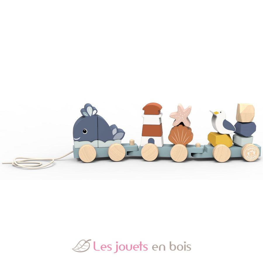 Tren apilable del océano, un juguete de madera de Speedy Monkey.