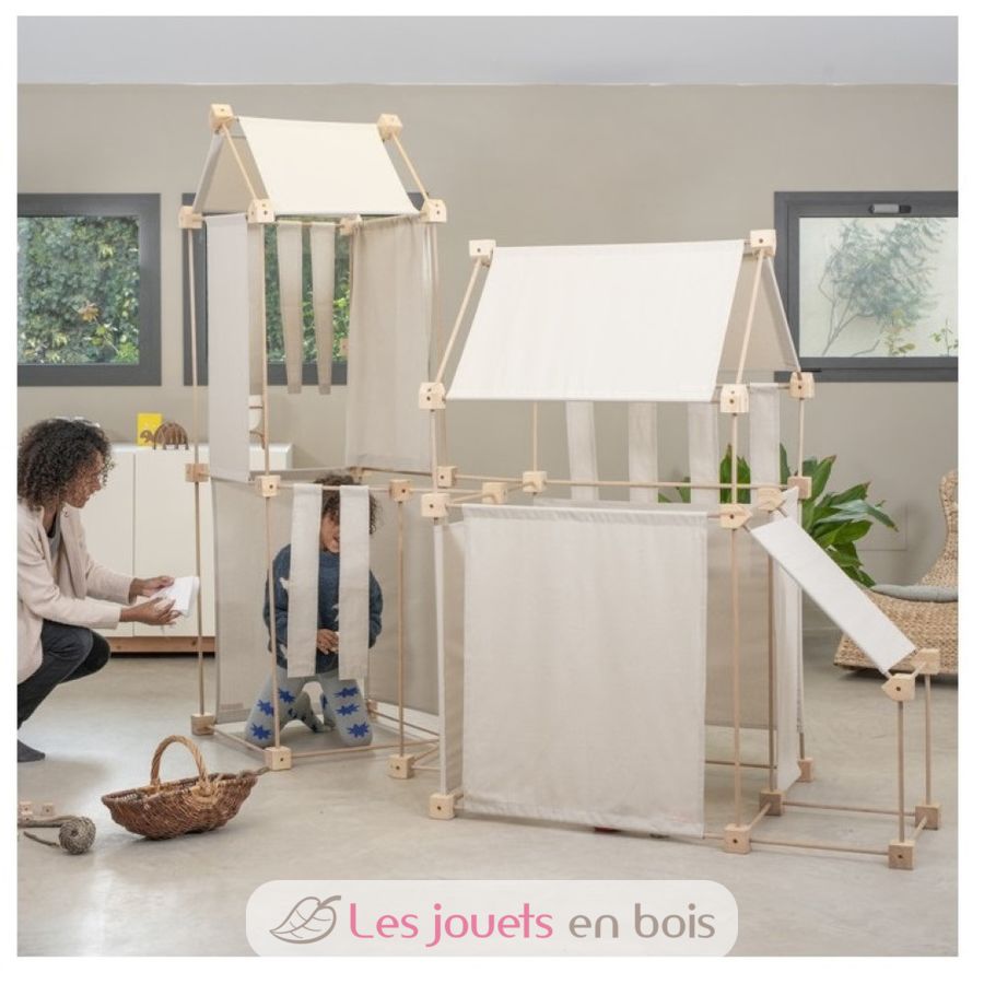 El Trigonos es un juego educativo de construcción gigante, compuesto por piezas de tela, cubos de unión y palos de madera. Estimula la curiosidad, la creatividad y la concentración: ¡sus posibilidades creativas son infinitas! Y casi sin darse cuenta, los niños aprenden conceptos básicos de geometría, matemáticas y física.