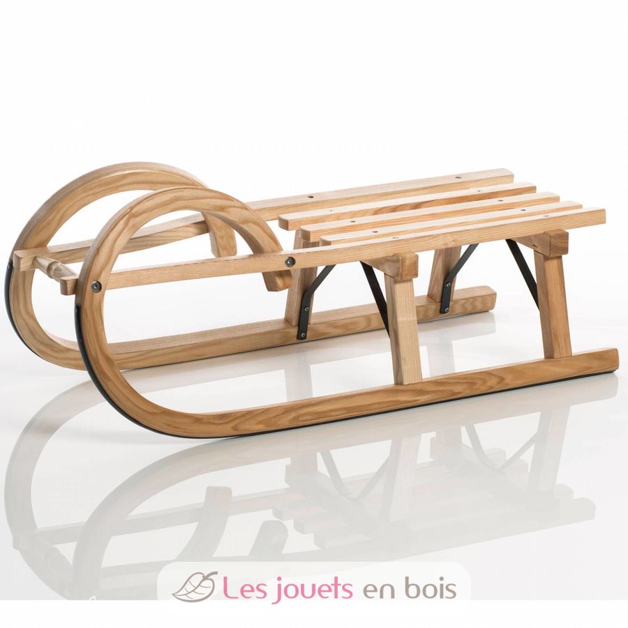 Precioso trineo tradicional Plus de madera de fresno, fabricado artesanalmente por la empresa familiar Sirch. Modelo pequeño de 85 cm, asiento de listón. Los patines de este trineo están completamente curvados al vapor. Esto da a los corredores un aspecto hermoso, continuo y curvado. En la parte delantera del trineo, se utiliza una pieza de madera torneada para fijar la cuerda. Los listones del trineo están todos atornillados, al igual que los refuerzos del bastidor. El trineo de madera tiene doble capa para mayor durabilidad. Este trineo está fabricado en Alemania y cumple con las normas de seguridad.