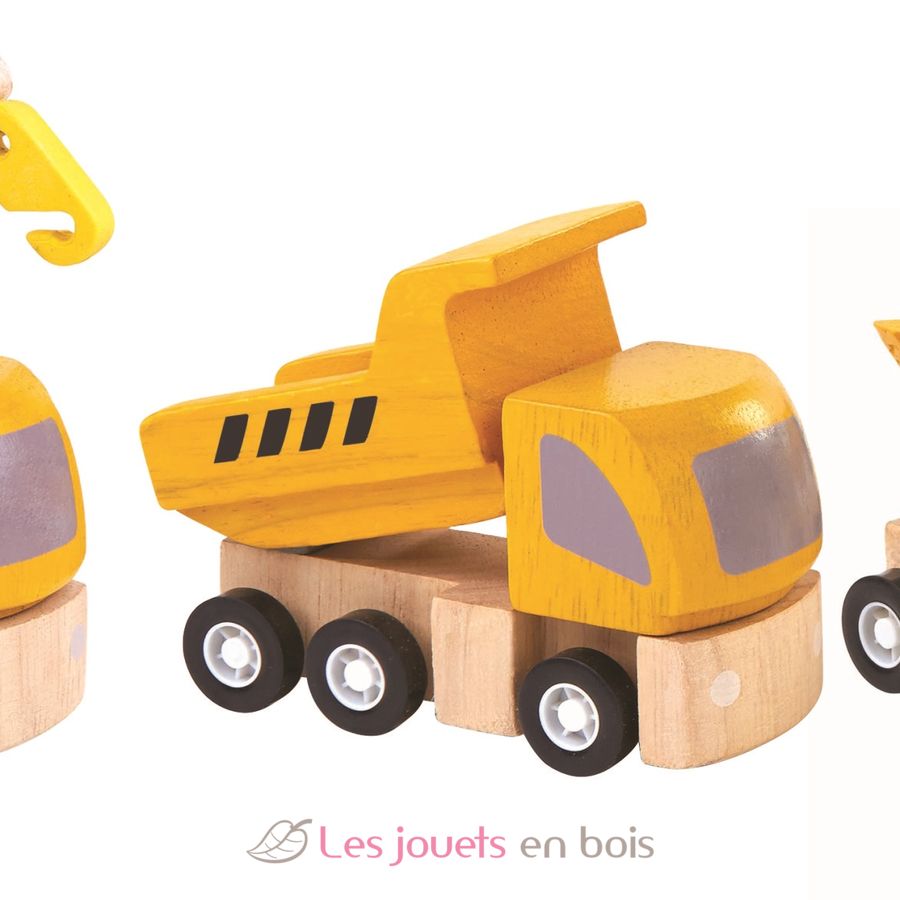 Set de vehículos de obra, vehículos de construcción de madera de Plan Toys. Referencia PT6047.