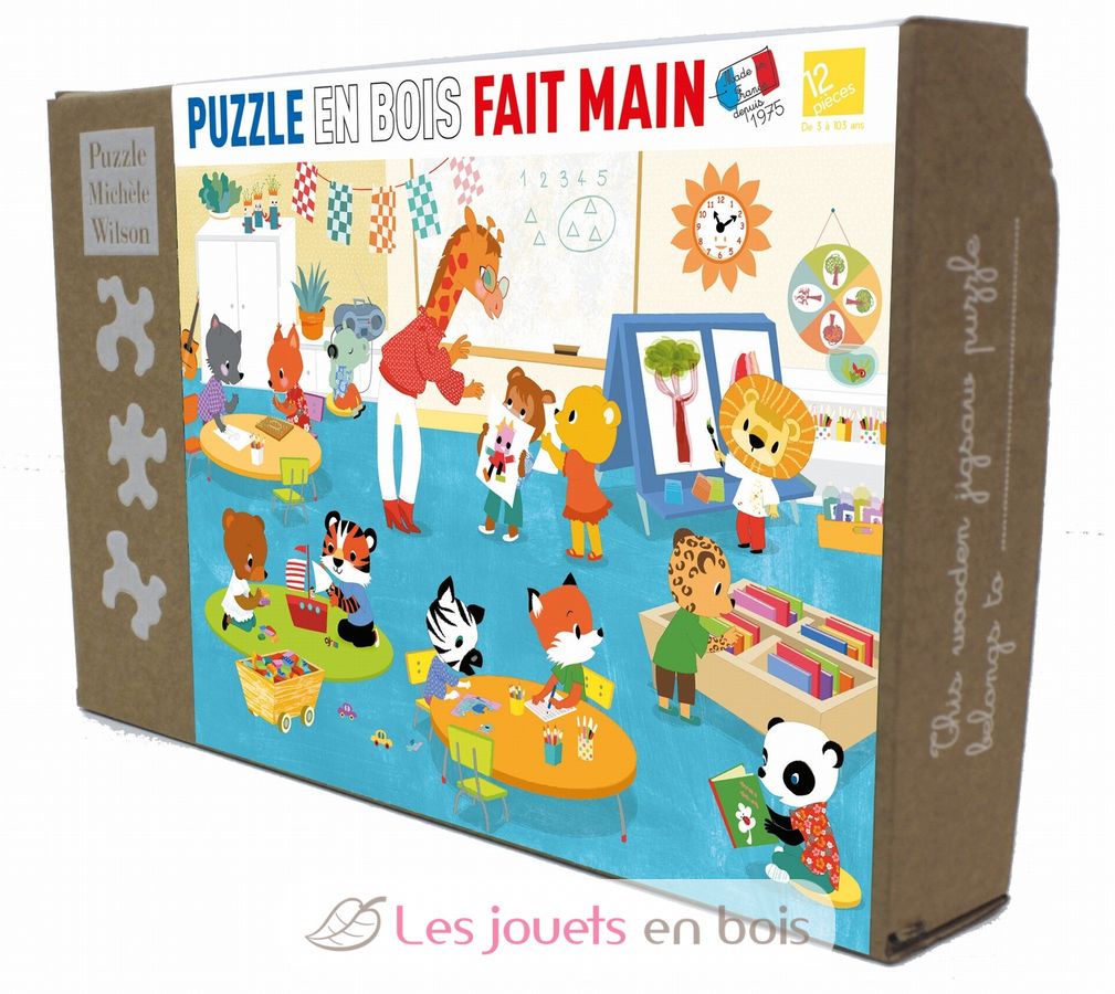 Este puzzle de madera procedente de bosques gestionados de forma sostenible está fabricado a mano en Francia por Michèle Wilson, y se entrega en una caja de cartón kraft reciclado que se abre y se cierra muy fácilmente. La etiqueta se desliza para tener a mano la imagen grande que hay que recomponer. Los rompecabezas de Michèle Wilson son divertidos y educativos, diseñados para los niños. Cada puzzle es único y el resultado de la habilidad e imaginación del artesano. Son creados por el hombre y no por la máquina.