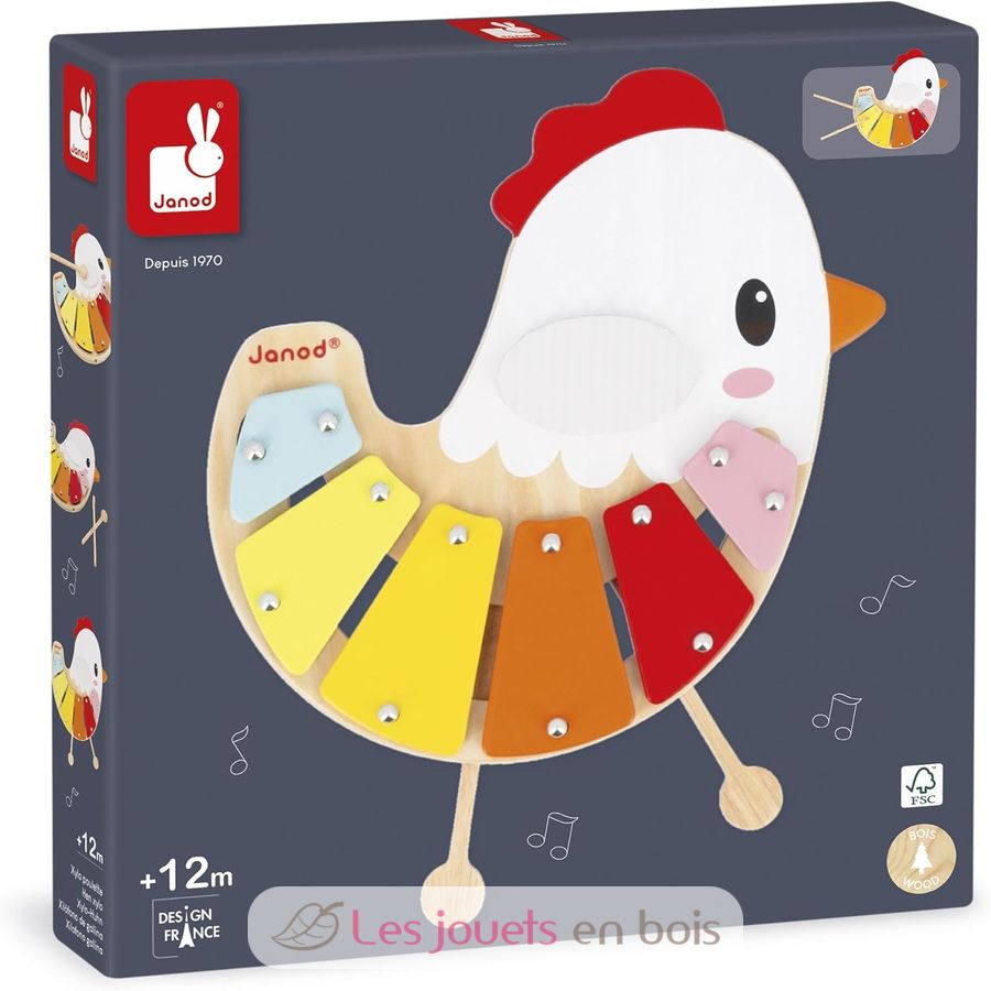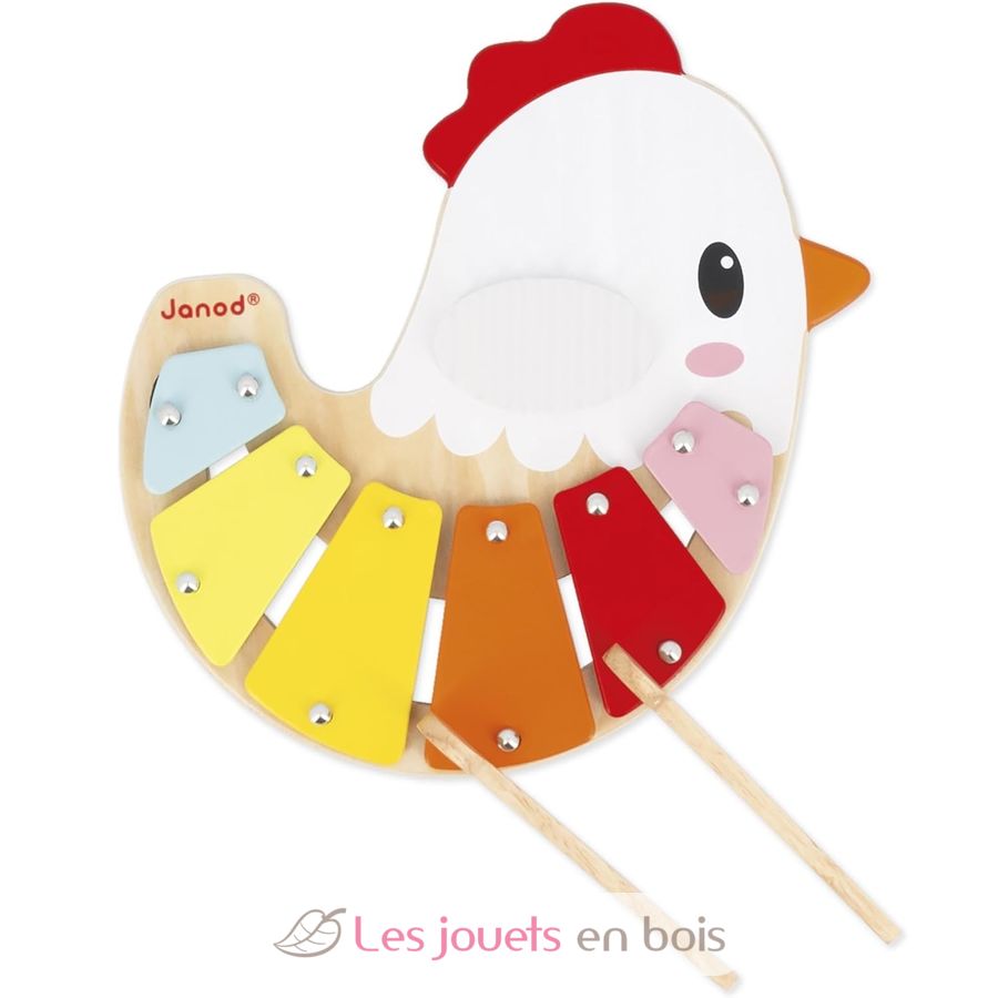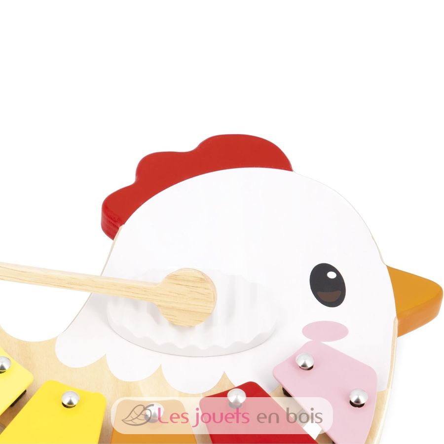 Xilófono de gallina, un juguete musical para niños de la marca Janod. Referencia J03335.